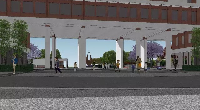 “十年树木,百年树人”校园是一代代学子学习生活的场所,我们通过建筑形体,片墙以及铺地全方位营造独具特色的庭院空间,以树木的年轮作为景观铺装意向,体现校园的人文情怀。