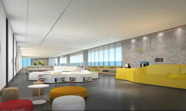 室内设计中通过不同功能区的不同设计手法,诠释校园精神,反映校园文化的多元性、自由性、兼容并蓄。同时注重内外部空间的交融,强调空间的交融性。